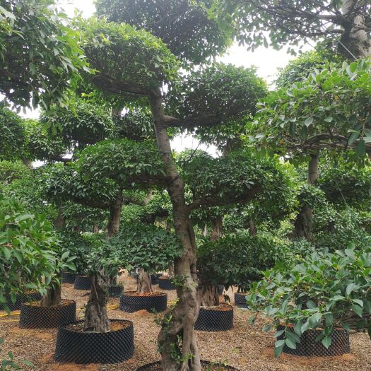 小叶榕是制作桩头的常用树种,因其根系发达、枝条柔韧、易于造型而备受青睐。桩头是指树木的根部或下部树干,通过特殊的栽培技术,可以培养出具有独特形态的桩头,用于园林绿化或盆景艺术。其造型过程通常包括选材、雕刻、培养和维护等步骤。首先,选择合适的树桩材料,通常选用自然野桩,最佳采集时间为春季至秋季。然后通过切割、雕刻和绑扎等手法,赋予桩头特定的形态。随后,通过控制水分和养分供给,促使桩头上的气生根和枝条按照预定的方向生长,最终形成美观的景观。而成型后的造型景观小叶榕桩头因其独特的外观和较强的适应性,常可适用于公园、庭院、公共绿地等多种景观设计,是一种结合自然美和人工艺术的植物景观艺术品。通常造型景观小叶榕桩头的售价为2000-5000元/棵左右。